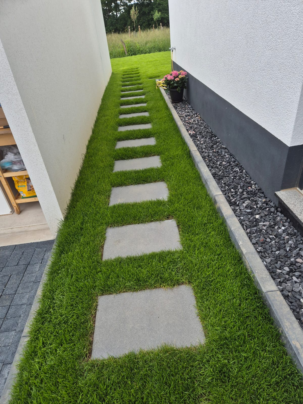 Wir bereiten den Boden professionell vor und schaffen mit Rasen oder Rollrasen eine dichte, grüne Fläche zum Wohlfühlen.